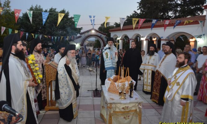 Αμέσως μετά τον Πανηγυρικό Εσπερινό και μέχρι μετά τα μεσάνυχτα τελέσθηκε από τον Μητροπολίτη μας ο Όρθρος και η Αρχιερατική Θεία Λειτουργία.