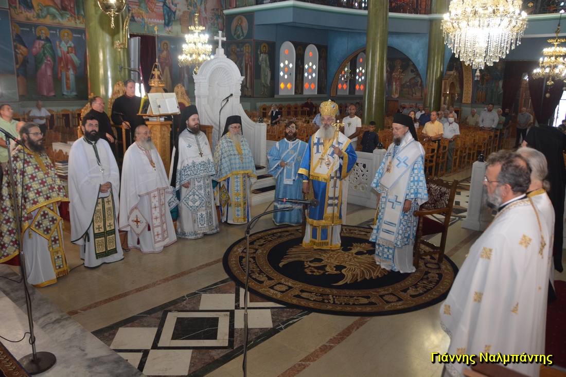 Το απόγευμα της Δευτέρας 5 Αυγούστου, τελέσθηκε ο Μέγας Πανηγυρικός Δισαρχιερατικός Εσπερινός της εορτής χοροστατούντους του Επισκόπου Τανάγρας κ. Αποστόλου και συγχοροστατούντος του Μητροπολίτου μας κ. Ανθίμου. Εκατοντάδες πιστοί συμμετείχαν στον Εσπερινό της εορτής. Πριν το τέλος του Εσπερινού μίλησε προς το εκκλησίασμα ο Επίσκοπος Τανάγρας κ. Απόστολος και αναφέρθηκε στην δεσποτική εορτή της Μεταμορφώσεως. Έπειτα, ευχαρίστησε τον Μητροπολίτη μας κ. Άνθιμο για την πρόσκληση και ευχήθηκε σε όλους χρόνια πολλά και ευλογημένα.