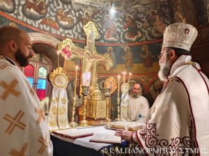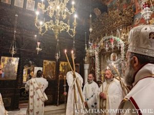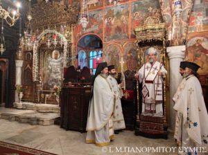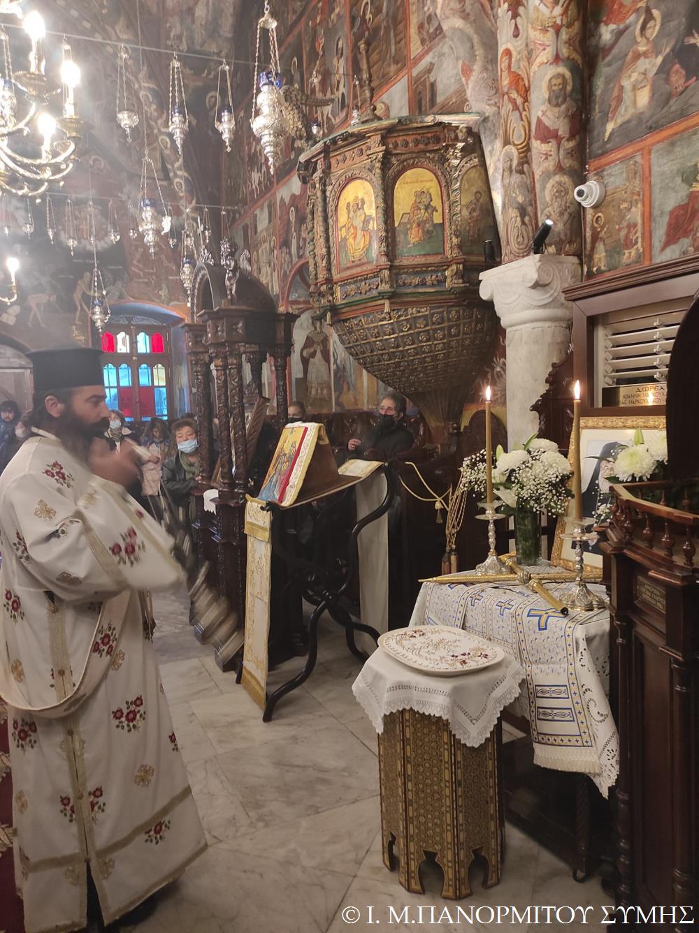 Ο σεπτός Ποιμενάρχης κ. Χρυσόστομος, χοροστάτησε στον Όρθρο, τέλεσε την Θεία Λειτουργία και στη συνέχεια μετά την απόλυση, προέστη στο Ιερό Μνημόσυνου. Συλλειτουργοί του ήταν ο Πανοσιολ. Καθηγούμενος της Ι. Μονής, Αρχιμανδρίτης τού Οικουμενικού Θρόνου Αντώνιος Πατρός, ο Ιερομόναχος π. Ανδρέας Δημητρίου, ο Πρεσβύτερος π. Παντελεήμων Μακρόπουλος και ο Διάκονος π. Γεώργιος Κακακιός.