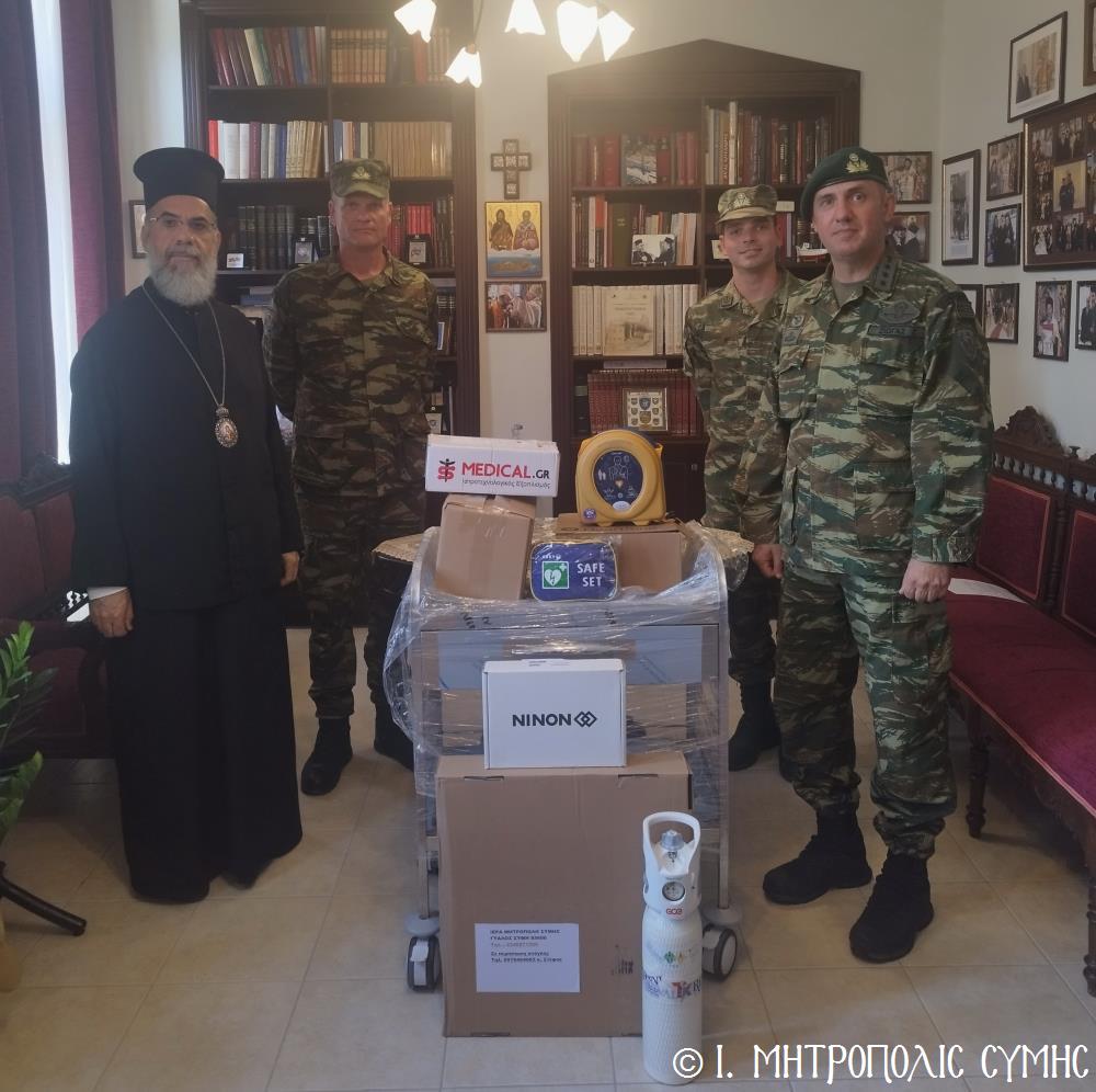Τη Δευτέρα 22ᾳ Ἰουλίου 2024 καί ὥρα 12:00 στά Γραφεῖα τῆς καθ’ ἡμᾶς Ἱερᾶς Μητροπόλεως ὁ Σεβ. Μητροπολίτης μας κ. Χρυσόστομος, παρέδωσε εἴδη σύγχρονου ἰατρικοῦ ἐξοπλισμοῦ στόν Στρατιωτικό Διοικητῆ τῆς Δ.Α.Ν. Σύμης, Συνταγματάρχη κ. Γεώργιο Ζιώγα, τόν Διοικητῆ τοῦ 549 Τ.Ε. Σύμης, Ἀντισυνταγματάρχη κ. Στυλιανό Φωκᾶ καί τόν Στρατιωτικό Ἰατρό κ. Κωνσταντῖνο Ἀγγελόπουλο, Ἀνθυπίατρο, τά ὁποῖα μέ τήν προσωπική διαμεσολάβηση τοῦ Σεβασμιωτάτου, κατόπιν αἰτήματος πρός αὐτόν τοῦ Ἀνθυπιάτρου, ἀπέστειλε τό γνωστό «Διαγνωστικό καί Θεραπευτικό Κέντρο Ἀθηνῶν ΥΓΕΙΑ Μ.Α.Ε.».