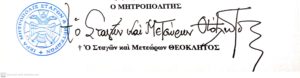 Μετὰ πολλῆς συγκινήσεως καὶ ἰδιαιτέρας συναισθηματικῆς φορτίσεως σεβαστὲ καὶ ἠγαπημένε μοι Γέρον, ἔλαβον τὸ ὑμέτερον Γράμμα, διὰ τοῦ ὁποίου γνωστοποιεῖς εἰς ἡμᾶς τὴν Παραίτησίν σου ἐκ τῶν καθηκόντων τοῦ Ἡγουμένου τῆς Ἱερᾶς Μονῆς τῶν Ἁγίων Πάντων – Βαρλαὰμ τῶν Ἁγίων Μετεώρων.