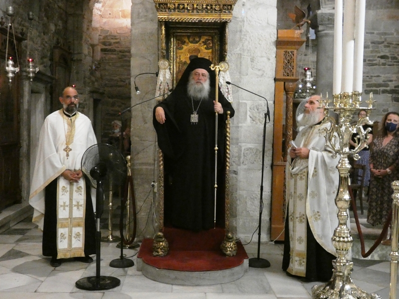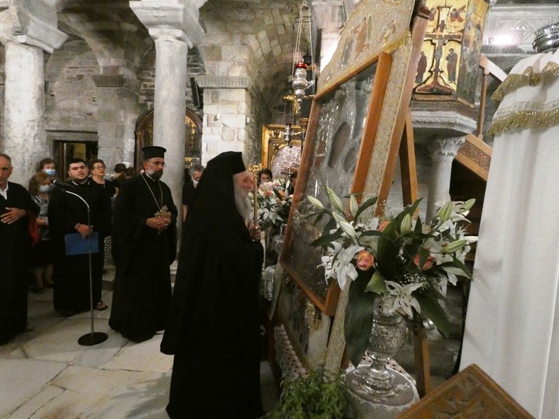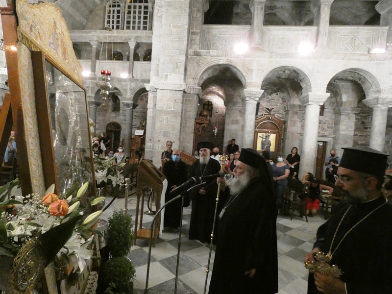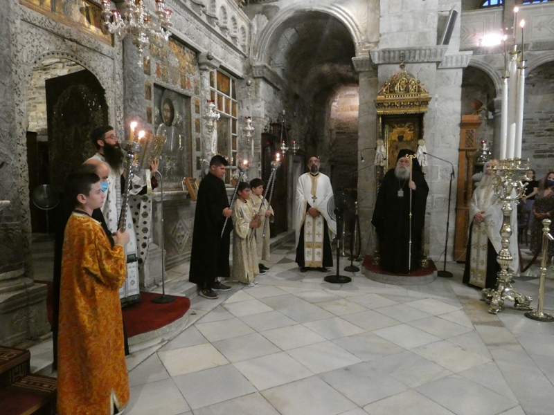 Ο Εσπερινός και η Ακολουθία του Μεγάλου Παρακλητικού Κανόνος τελέσθηκαν την Τετάρτη 9-8-2022 το απόγευμα στο Ιερό Προσκύνημα Παναγίας Εκατονταπυλιανής Πάρου, χοροστατούντος του Μητροπολίτου Παροναξίας κ. Καλλινίκου.
