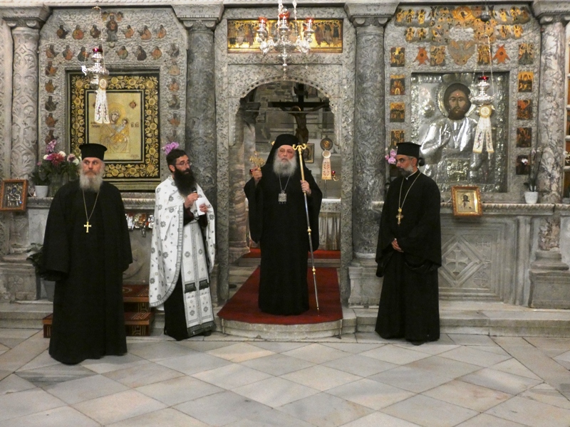 Προ του «Δι’ ευχών», ο Μητροπολίτης απηύθυνε ευχές προς τους ιερείς και τους πιστούς, εν όψει της μεγάλης Θεομητορικής εορτής της Κοιμήσεως της Υπεραγίας Θεοτόκου.