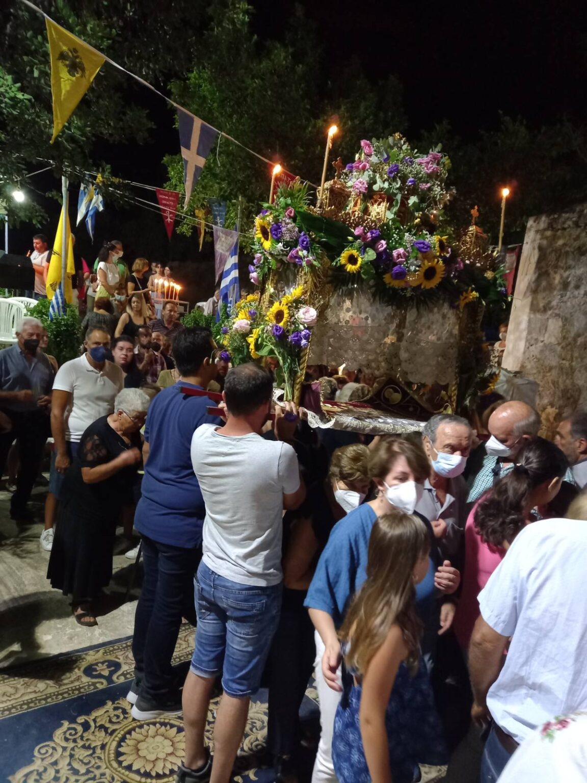 Ακολούθησαν τα εγκώμια της Παναγίας μας και η περιφορά του επιταφίου. Συμμετείχαν μετά του Ποιμεναρχου μας οι κληρικοί της Βιάννου, Πανοσιολ. Αρχιμ. Βασίλειος Μανετάκης, ο Πρωτοπρ. Στυλιανός Γεωργιαννάκης, ο Οικονόμος Νικόλαος Κονσολάκης και Νικόλαος Δουλγεράκης εφημέριος της Ενορίας, και ο Αρχιδιάκονος Μαρίνος Δασκαλάκης, ενώ το αναλόγιο διακόνησε ο διάκονος Πέτρος Αράπογλου.