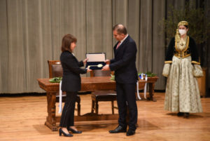Με το πέρας των εκδηλώσεων στο Δημοτικό Πνευματικό Κέντρο Καλαμάτας ο Δήμος ανακήρυξε την Πρόεδρο της Δημοκρατίας Επίτιμη Δημότη Καλαμάτας, ενώ ο Δήμαρχος Αθ. Βασιλόπουλος, της προσέφερε το χρυσό κλειδί της πόλης.