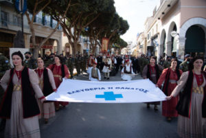 Στη συνέχεια πραγματοποιήθηκε η καθιερωμένη αναπαράσταση κατάληψης της πόλης και η παρέλαση μαθητών σχολείων και οπλαρχηγών με τις ομάδες τους, ενώπιον της κ. Προέδρου.