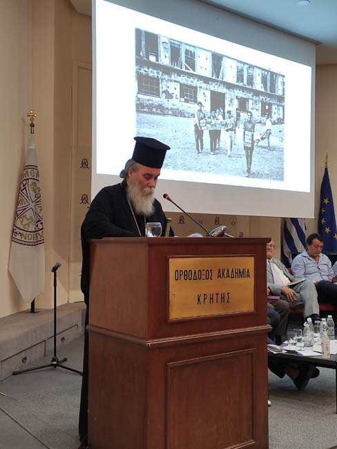 Μεσούσης της περιόδου του αγίου Δεκαπενταύγουστο παρουσιάστηκε στην, πάντα φιλόξενη, Ορθόδοξο Ακαδημία Κρήτης το βιβλίο: «ΜΗΤΡΟΠΟΛΙΤΗΣ ΕΙΡΗΝΑΙΟΣ ΓΑΛΑΝΑΚΗΣ- Νοσταλγικές αναμνήσεις ανθρώπων που έζησαν κοντά του», του κ. Παντελή Κατάκη, Φαρμακοποιού-Επιχειρηματία. Πρόκειται περί επίπονης εργασίας 10ετίας και πλέον, απομαγνητοφωνημένων συνεντεύξεων που ο συγγραφέας είχε λάβει από πλήθος ανθρώπων, του τόπου και της ευρύτερης περιοχής· ποικίλα ευεργετηθέντες από τον αοίδιμο Μητροπολίτη Κισάμου και Σελίνου κ. Ειρηναίο, οι οποίοι στις συνεντεύξεις αυτές, κατέθεσαν την ευγνωμοσύνη και τις ευχαριστίες τους προς τον μεγάλο τους ευεργέτη, εις μνημόσυνο αιώνιο. Όπως δηλώνει στο προλογικό του σημείωμα ο συγγραφέας: «Τις εμπειρίες αυτές, τόσο τις δικές μου, όσο και πολλών άλλων που βρέθηκαν κοντά του, θέλω με το παρόν βιβλίο να τις προσφέρω ως σπουδαία παρακαταθήκη στις επόμενες γενιές». Τον όλο συντονισμό-παρουσίαση της εκδήλωσης είχε ο κ.Αντώνιος Βακάκης, Γραμματέας της Ιεράς Μητροπόλεως μας και Πρωτοψάλτης του Ιερού Μητροπολιτικού μας Ναού, ο οποίος είχε και την επιμέλεια της έκδοσης. Ο κ. Βακάκης, με λόγους σεβαστικούς και ευγνωμοσύνης, αναφέρθηκε στον μακαριστό Μητροπολίτη κυρό Ειρηναίο και, ακολούθως, στο περιεχόμενο του Βιβλίου, μνημονεύοντας το περιεχόμενο κάθε ενότητας, σταχυολογώντας μικρά κείμενα. Ακολούθησε χαιρετισμός από τον Σεβ. Μητροπολίτη μας κ.Αμφιλόχιο, ο οποίος μνημόνευσε τον «μακαριστό και πολύσεβαστο» προκάτοχο του, Μητροπολίτη Κισάμου και Σελίνου κυρού Ειρηναίο. «Μορφή πλήρης χάριτος, μορφή ηγετικής. Κορυφαίος εκκλησιατικός άνδρας, αναλισκόμενος υπέρ της ποίμνης συνεχώς∙ με διαυγάζουσα φωτεινότητα παραδείγματος, με μεμαρτυρημένη ποιμαντική προσανάλωση. Έζησε με ζήλο μιμήσεως του ήθους και αγωνιστικότητας», ως σημείωσε. Ακολούθως, με λόγους θερμούς, συνεχάρη και επαίνεσε τον συγγραφέα κ. Παντελή Κατάκη, «εκλεκτό συνεργάτη στο έργο της Εκκλησίας και της Ιεράς Μητροπόλεως», κίνητρο συγγραφής του βιβλίου ως είπε είναι: «Αντιπελάργηση σεβασμού, ευγνωμοσύνης και ευχαριστίας, του ευεργετούμενου προς τον ευεργέτη, του μαθητή προς τον διδάσκαλο, του παιδιού προς τον πατέρα». Χαιρέτισε επίσης και το πάνελ των δώδεκα «εκλεκτών προσώπων» που παρουσίασαν, δειγματοληπτικά, αποσπάσματα εκ του βιβλίου, ως και το πλήθος του κόσμου που, ασφυκτικά, είχε κατακλύσει το μεγάλο αμφιθέατρο της ΟΑΚ. Με συγκίνηση ο συγγραφέας κ. Παντελής Κατάκης ευχαρίστησε τον Σεβ.Μητροπολίτη μας κ. Αμφιλόχιο ως και τον παρουσιαστή-συντονιστή κ. Αντώνιο Βακάκη, όσους διάβασαν αποσπάσματα εκ του βιβλίου του, την ΟΑΚ δια την φιλοξενία ως και το πλήθος του κόσμου που μετείχε της βιβλιοπαρουσίασης. Χαιρετισμό, επίσης, απεύθυνε ο Γεν. Δντής της ΟΑΚ, Δρ. Κωνσταντίνος Ζορμπάς.