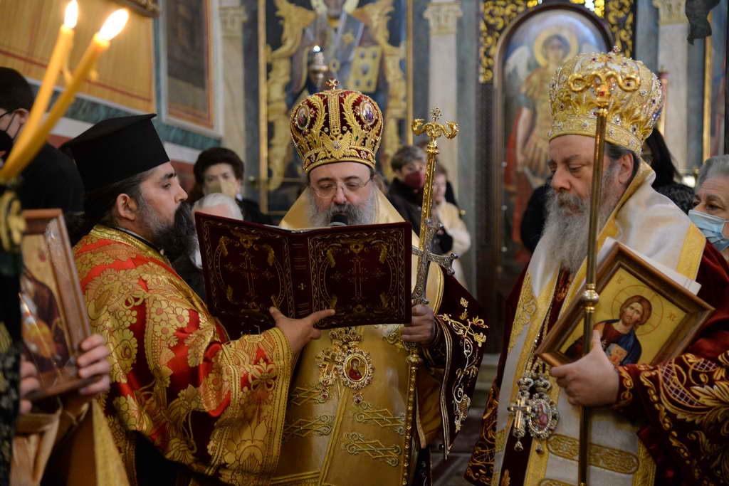 Μέ λαμπρότητα ἑορτάσθη ἡ Κυριακή τῆς Ὀρθοδοξίας στήν Ἱερά Μητρόπολη Πατρῶν. Ὁ Σεβασμιώτατος Μητροπολίτης Πατρῶν κ.κ. Χρυσόστομος, προέστη τῆς Θείας Λειτουργίας στόν Ἱερό Μητροπολιτικό Ναό Εὐαγγελιστρίας Πατρῶν, συλλειτουργοῦντος τοῦ Θεοφιλεστάτου Ἐπισκόπου Κερνίτσης κ. Χρυσάνθου.