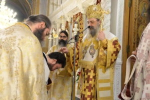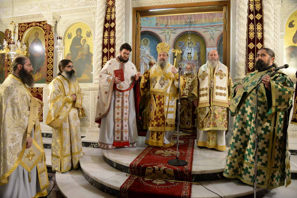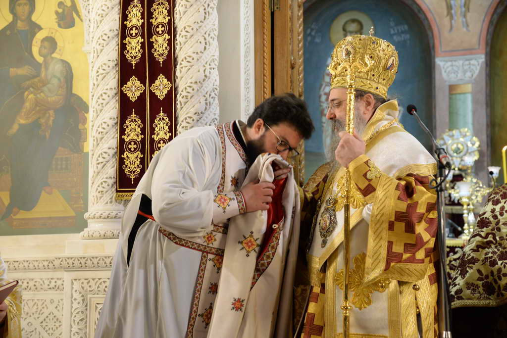 Απευθυνόμενος προς τον χειροτονηθέντα Πρεσβύτερo, τον συνεχάρη για την υψίστη τιμή και ευλογία που έλαβε από τον Θεό, να καταστεί λειτουργός των θείων και Φρικτών Μυστηρίων και μίλησε για το μέγα Δείπνο στο οποίο μας καλεί ο μέγας Οικοδεσπότης.
