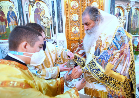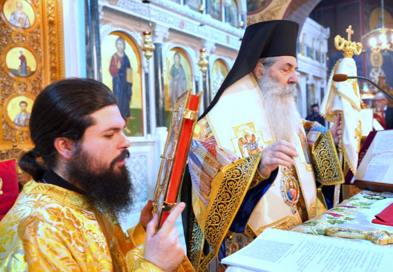 Στην συνέχεια ο Σεβασμιώτατος αναφέρθηκε τόσο στην εόρτιο μνήμη «του παιδομάρτυρος Αγίου Ταρσιζίου, του δεκαπενταετούς νεανίσκου της πρώτης Εκκλησίας, ο οποίος υπερασπιζόμενος τα τίμια και άχραντα και ζωοποιά Μυστήρια που έφερε για να Μεταλάβουν οι αδελφοί του… έδωκε την νεανική του ζωή, το πορφυρό παρθενικό του αίμα και πότισε το δέντρο της πίστεως», όσο και στον Ιερό Φώτιο, Πατριάρχη Κωνσταντινουπόλεως «τον διασφαλίσαντα και διακρατήσαντα της αποστολικοπαραδότου πίστεως των Αγίων Αποστόλων και των Θεοφόρων Αγίων Πατέρων».