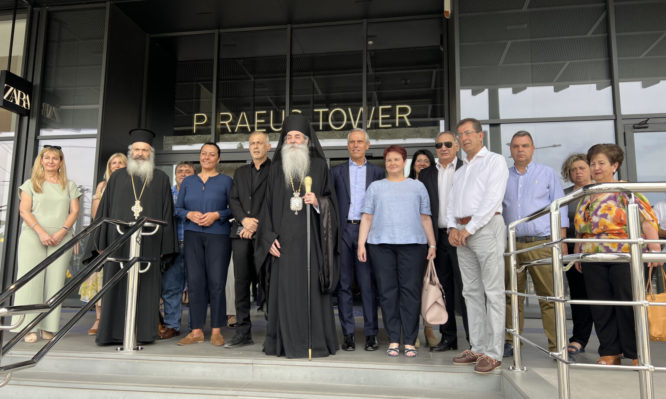Την Ακολουθία του Αγιασμού στον ανακαινισμένο Πύργο του Πειραιά τέλεσε σήμερα Δευτέρα 3 Ιουνίου 2024 ο Σεβασμιώτατος Μητροπολίτης Πειραιώς κ. Σεραφείμ, παρουσία του Δημάρχου Πειραιά κ. Γιάννη Μώραλη και του Διευθύνοντος Συμβούλου της εταιρίας ανάπτυξης ακινήτων Dimand κ. Δημήτρη Ανδριόπουλου.