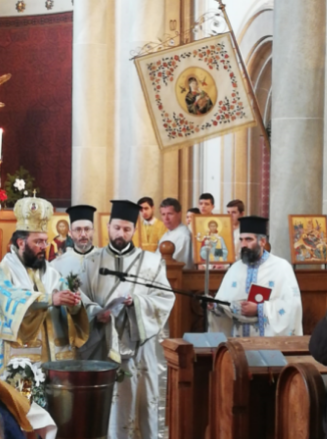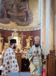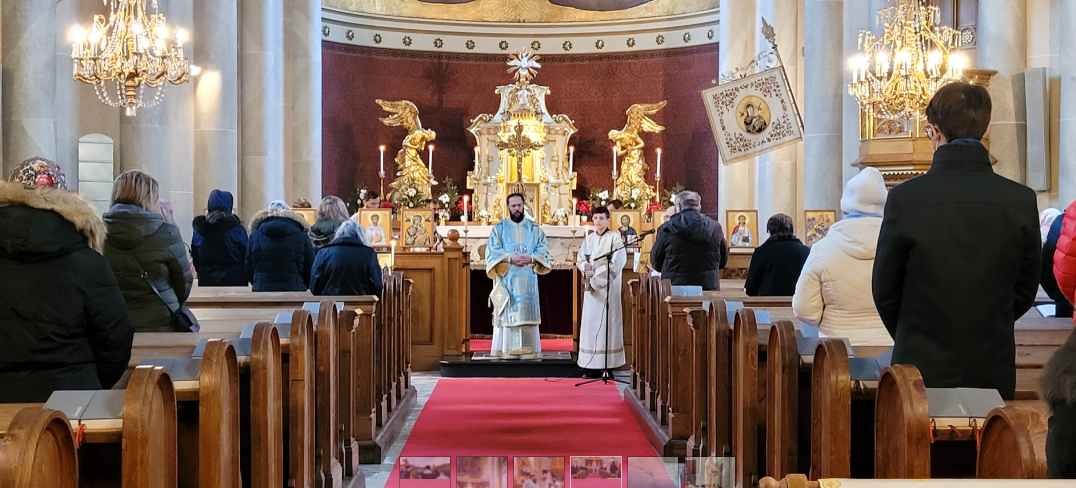 Ο Σεβασμιώτατος Μητροπολίτης Αυστρίας και Έξαρχος Ουγγαρίας κ. Αρσένιος προεξήρχε της Θείας Λειτουργίας στον μεγαλοπρεπή Ενοριακό Ναό της Παναγίας συμπαραστατούμενος από τον π. Νεμάνια Komnenov, ιερατικώς Προιστάμενο και τον π. Στέφανο Lorbek, Διάκονο της Ενορίας καθώς και τον πρεσβύτερο π. Αριστείδη Γανώση και τον Αρχιδιάκονο π. Μάξιμο Rugyko.