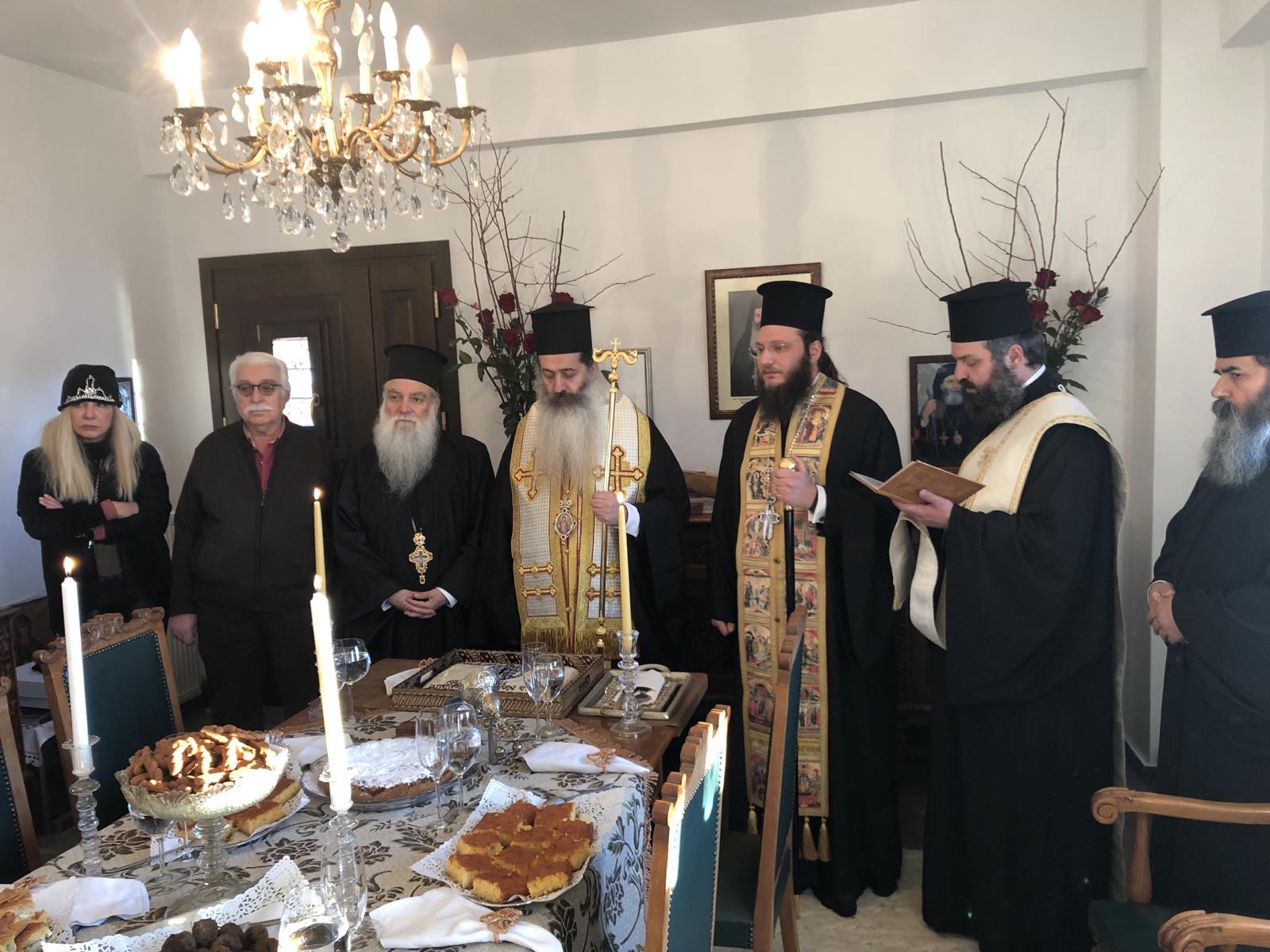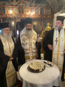 Ο κ. Συμεών αφού προσκύνησε στον Ιερό Ναό του Αγίου Αθανασίου, ακολούθως ευλόγησε την Βασιλόπιτα της Μονής και ευχήθηκε πατρικώς καλή και ευλογημένη η νέα χρονιά, υγεία και δύναμη στον π. Παρθένιο, καθώς και στον δόκιμο μοναχό Ιωάννη, ενώ για ακόμη μία φορά κατέθεσε την ευγνωμοσύνη του στον κ. Γιαννόπουλο, εξαίροντας το έργο και την σπουδαία προσφορά του στην τοπική Εκκλησία και την κοινωνία ολοκλήρου της Φθιώτιδος, με την ανέγερση αυτής της Μονής, αλλά και με την ουσιαστική συμπαράστασή του προς τη νέα Αδελφότητα, η τοποθέτηση της οποίας εκπληρώνει το όραμα του κ. Υπουργού.