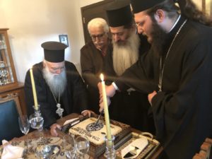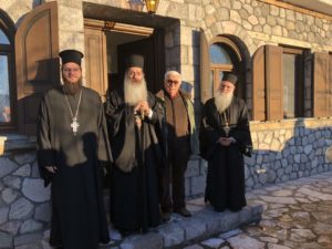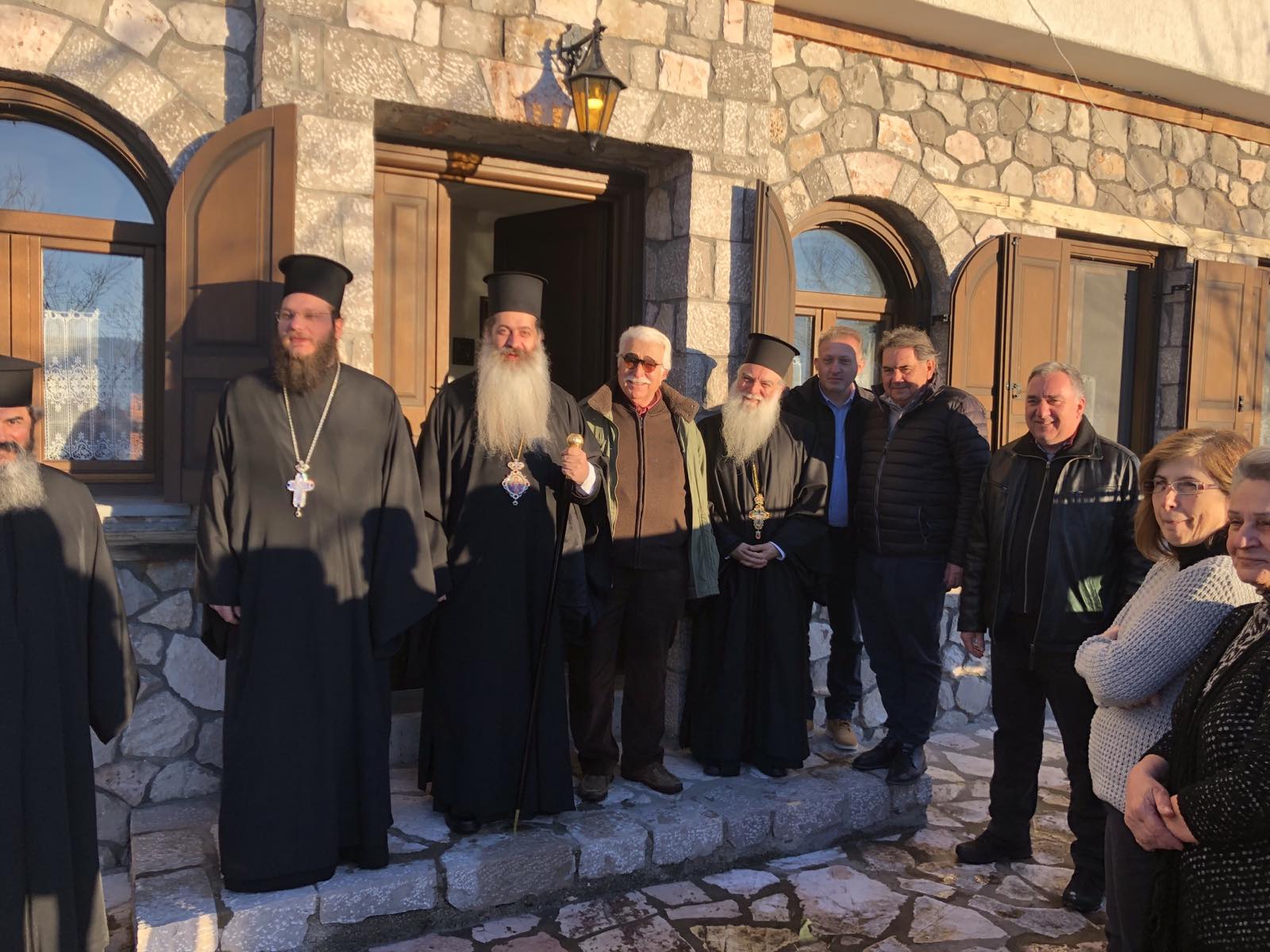 Στο Περίβλεπτο τον Σεβασμιώτατο υποδέχθηκαν και καλωσόρισαν με ενθουσιασμό και αγάπη, τόσο ο Άγιος Καθηγούμενος π. Παρθένιος Κουκούλης, όσο και ο κτήτωρ της Μονής, σεβαστός τ. Υπουργός, Καθηγητής Χειρουργικής κ. Αθανάσιος Γιαννόπουλος και η οικογένειά του.
