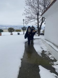 Συγχρόνως ο κ. Συμεών είχε την ευκαιρία τόσο με την γερόντισσα Φιλοθέη όσο και με την γερόντισσα Χριστοδούλη να συζητήσει πρακτικά θέματα που απασχολούν τις Ιερές Μονές.
