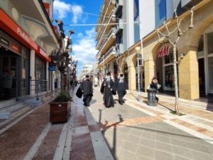 Κατόπιν, ο Σεβασμιώτατος περπάτησε στους κεντρικούς δρόμους του Αγρινίου και θυμήθηκε αναμνήσεις του από το παλαιό Αγρίνιο. Στην κεντρική πλατεία θυμήθηκε όταν ως μαθητές των Γυμνασίων, κατά τις εθνικές επετείους συμμετείχαν στις εκδηλώσεις και εκφωνούνταν οι πανηγυρικές ομιλίες. Κατά τον περίπατό συνομίλησε με τους Αγρινιώτες και κατευθύνθηκε στο Δημαρχείο της πόλεως όπου συναντήθηκε με τον Δήμαρχο Αγρινίου κ. Γεώργιο Παπαναστασίου με τον οποίο συζήτησαν τρέχοντα θέματα.