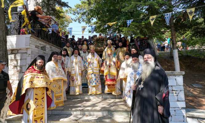 Την Πέμπτη 15 Αυγούστου το πρωί εορτάστηκε με λαμπρότητα η Θεομητορική Εορτή της Κοιμήσεως της Υπεραγίας Θεοτόκου στο Πανελλήνιο Ιερό Προσκύνημα της Παναγίας Σουμελά στην Καστανιά του Βερμίου.