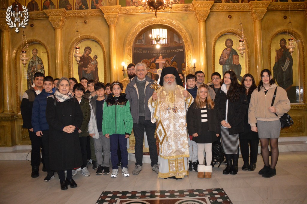 Τους μαθητές και εκπαιδευτικούς της Ομογένειας υποδέχθηκε και δεξιώθηκε ο Σεβασμιώτατος Μητροπολίτης Νεαπόλεως και Σταυρουπόλεως κ. Βαρνάβας στον Ιερό Ναό του Αγίου Ραφαήλ Μετεώρων.