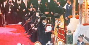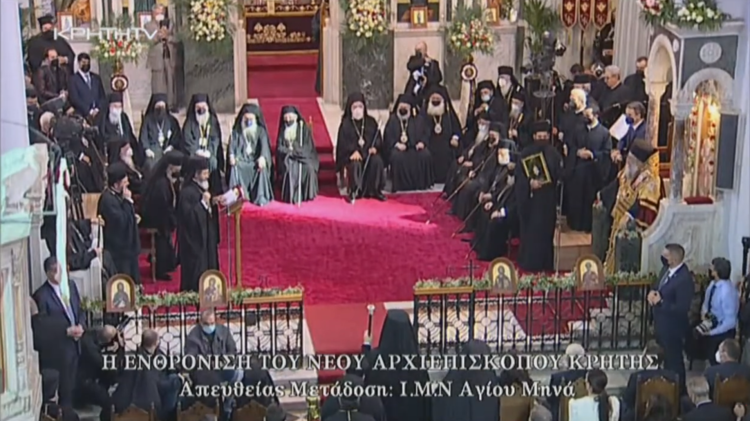 Με τη χάρη του εν Τριάδι Θεού, αισθάνομαι ιδιαίτερη την ευλογία δι’ εμέ να συμμετέχω στη χαρά σας, ως εκπρόσωπος της Α.Μ. του Αρχιεπισκόπου Κύπρου κ.κ. Χρυσοστόμου Β΄ και της Παλαιφάτου Αποστολικής Εκκλησίας της Κύπρου, Σεβασμιώτατε Άγιε Κρήτης, αυτή την ιστορική ημέρα της ενθρονίσεώς σας, του εγκαινιασμού εν Αγίω Πνεύματι της νέας ελπιδοφόρου σελίδας της ιστορικής πορείας της νοητής ολκάδας του Μεγάλου Αρχιερέως Χριστού υπό την πηδαλιουχία σας, με συγκυρηναίους τους εν Χριστώ αδελφούς Αρχιερείς της Ιεράς Επαρχιακής Συνόδου της Εκκλησίας της μεγαλονήσου Κρήτης.