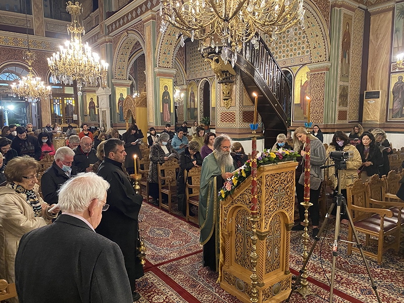 Στην 3η ακολουθία της Β΄ Στάσεως των Χαιρετισμών που τελέστηκε στον Ιερό Ναό Ευαγγελιστρίας Πειραιώς, την Παρασκευή 10 Μαρτίου, ιερούργησε και μίλησε προς τους πιστούς, ο Πρωτοπρεσβύτερος π. Γεώργιος Θεοδωρόπουλος, κληρικός της Ιεράς Μητροπόλεως Πειραιώς.