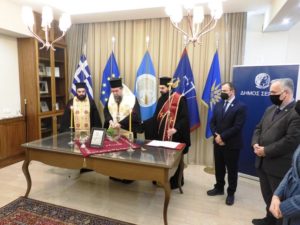 Η αγία μητέρα μας Εκκλησία, σας περιβάλει κ. Δήμαρχε, με τις ολόθερμες προσευχές και με τιμή βαθεία. Ευχόμεθα με την χάρη του αγίου Θεού να συνεχίσετε να εργάζεσθε μαζί με τους καλούς σας συνεργάτες και όλα τα έντιμα μέλη του Δημοτικού Συμβουλίου με όραμα και συνθετική δημιουργικότητα για την περαιτέρω πρόοδο του τόπου. Να δημιουργείτε και όχι απλώς να διαχειρίζεσθε. Η Εκκλησία μας διακονεί με πιστότητα το όραμα της ενότητος, της συνεργατικότητος και της ομοψυχίας του λαού μας μέσα από την καθαρότητα και την δυναμική της χριστιανικής μας πίστεως και αλληλεγγύης, που αποτελούν θεμελιακό στοιχείο της ταυτότητος του τόπου μας και προϋπόθεση περαιτέρω προόδου και προοπτικής, υπεγράμμισε χαρακτηριστικώς ο Σεβασμιώτατος.