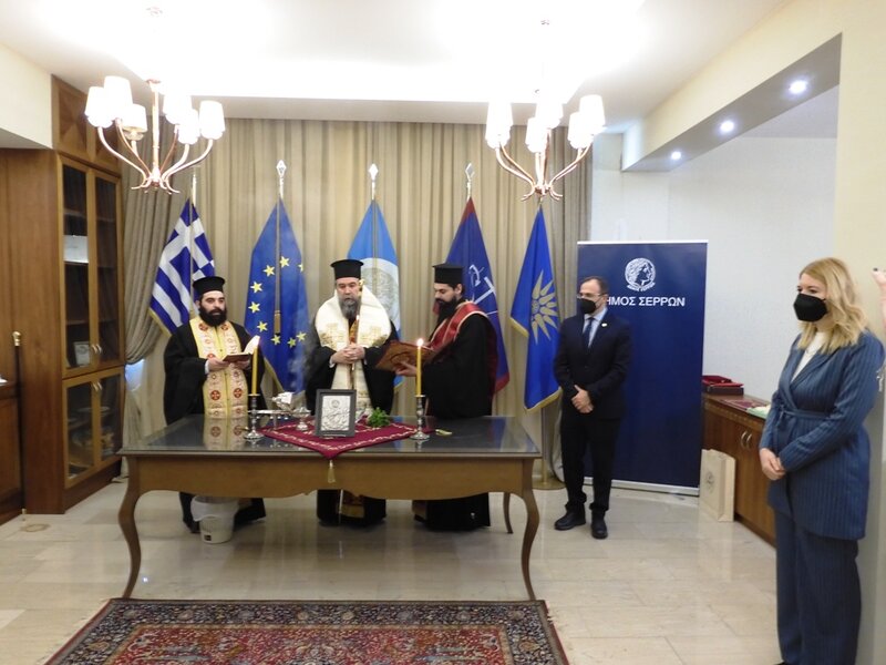 Πριν την απόλυση της ιεράς ακολουθίας, ο Ποιμενάρχης της Εκκλησίας των Σερρών και Νιγρίτης κ. Θεολόγος, ευχήθηκε σε όλους την ευλογία του Θεού στο έργο τους, υγεία κατ’ άμφω, καλή δύναμη και κάθε επιτυχία στα καθήκοντά τους. Αναφέρθηκε δε, στην αγαστή συνεργασία του Δήμου με την Εκκλησία των Σερρών, προς όφελος του τόπου και πρόοδο των πολιτών, διαβεβαιώνοντας ότι η τοπική Εκκλησία θα συνεχίσει να λειτουργεί συνεργατικώς ως αγαθοποιός δύναμις και θερμή συμπαραστάτης στην τοπική κοινωνία, επ’ωφελεία πάντοτε των ανθρώπων.