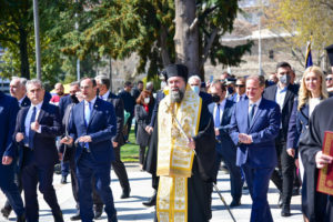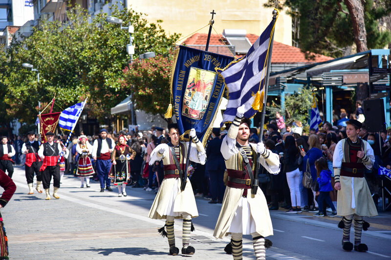 Τέλος, ακολούθησε, με προσεκτική τήρηση των υγειονομικών μέτρων προστασίας, η καθιερωμένη παρέλαση και στην πόλη των Σερρών, με την συμμετοχή αντιπροσωπειών Σχολικών τμημάτων, Πολιτιστικών Συλλόγων και τμημάτων του Στρατού.
