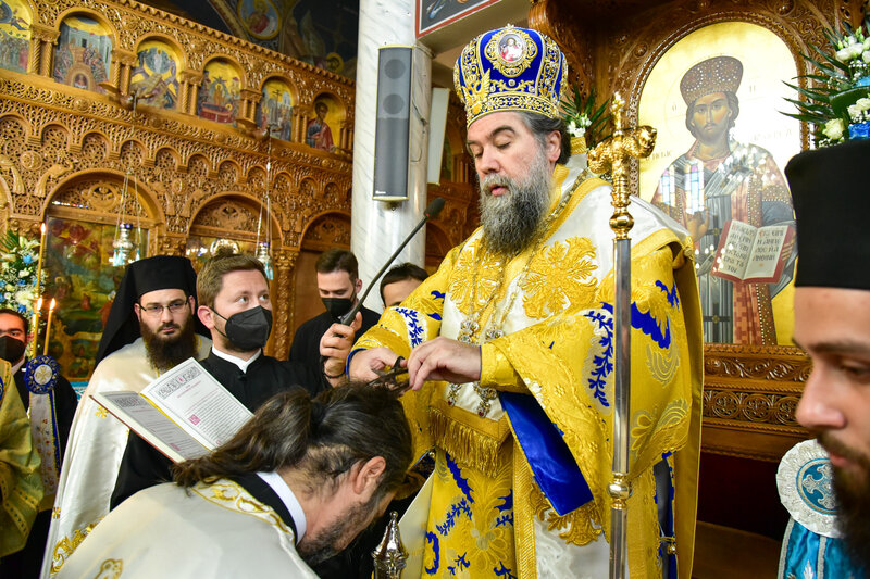 Σήμερα, Παρασκευή 25η Μαρτίου 2022, τελέσθηκε η πανηγυρική Θεία Λειτουργία στον εορτάζοντα ιερό Ναό, όπου ιερούργησε ο Σεβασμιώτατος Μητροπολίτης Σερρών και Νιγρίτης κ. Θεολόγος. Κατά την διάρκεια της θείας Μυσταγωγίας, τελέσθηκε το Μυστήριο της εις Διάκονον χειροτονίας του κ. Μύρωνα Μποστανίδη, ο οποίος ως έγγαμος πλέον κληρικός ενετάχθη οργανικώς στο έμψυχο δυναμικό της Εκκλησίας των Σερρών.