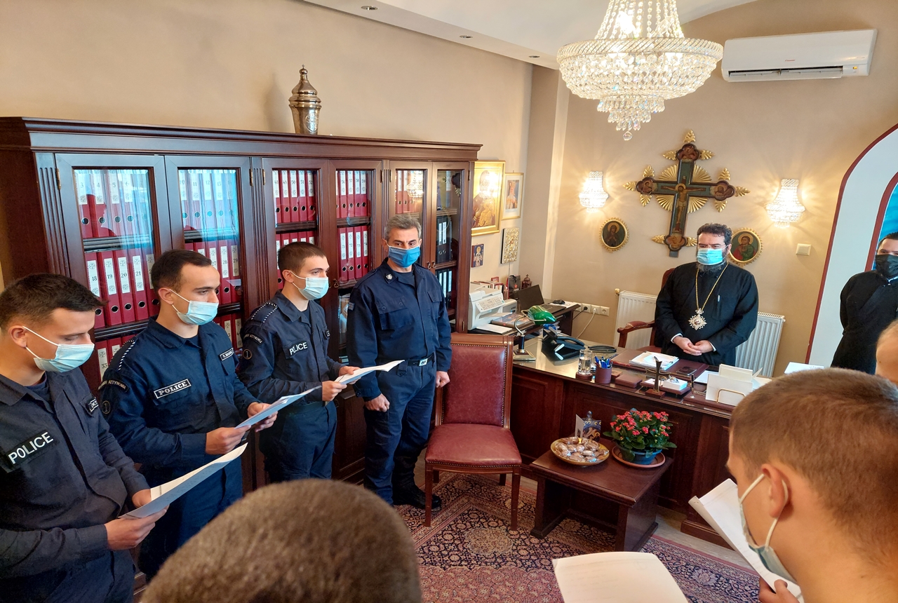 Σπουδαστές της Σχολής Αστυφυλάκων έψαλαν τα Κάλαντα των Χριστουγέννων στον Μητροπολίτη Μαρωνείας