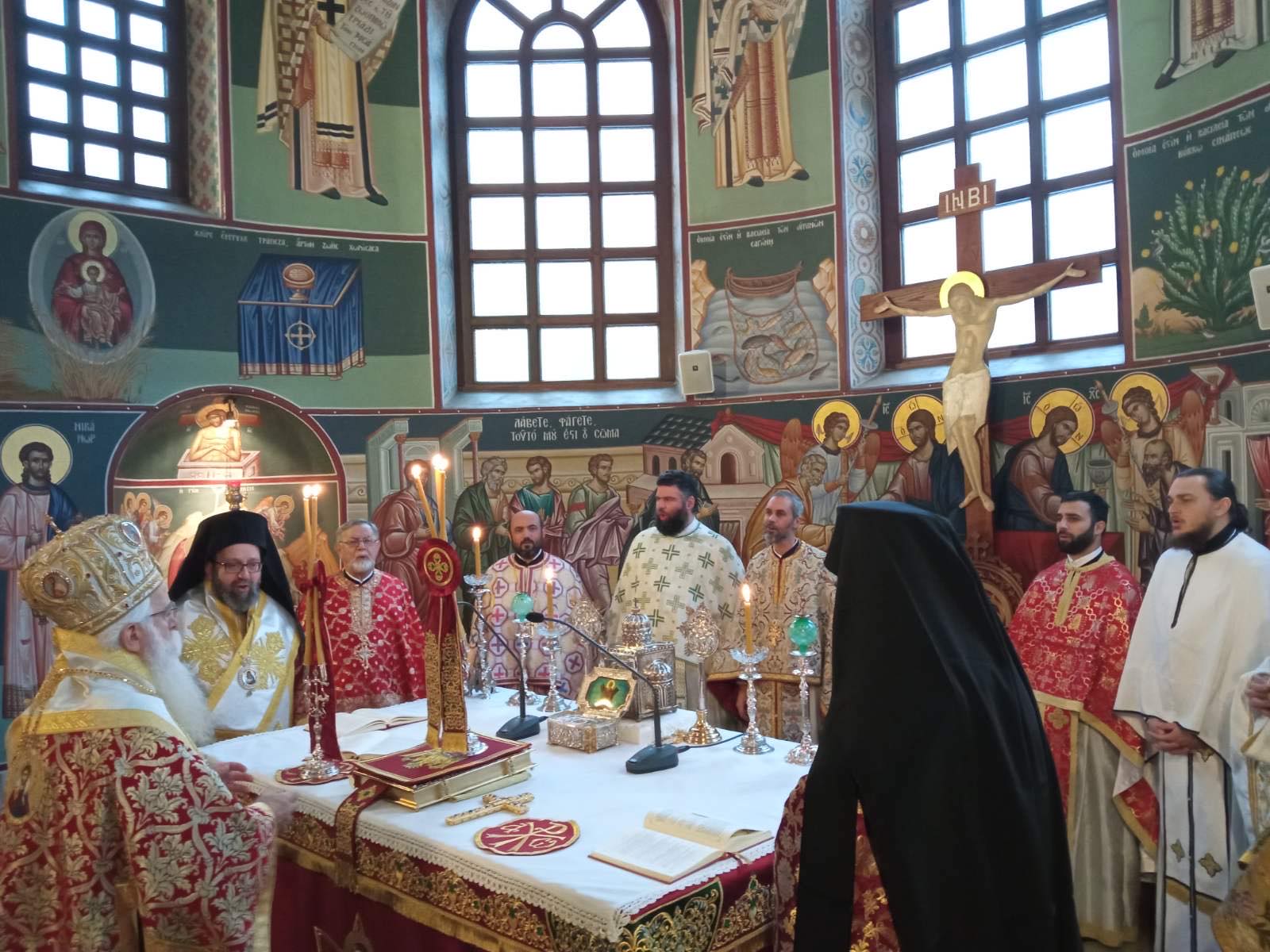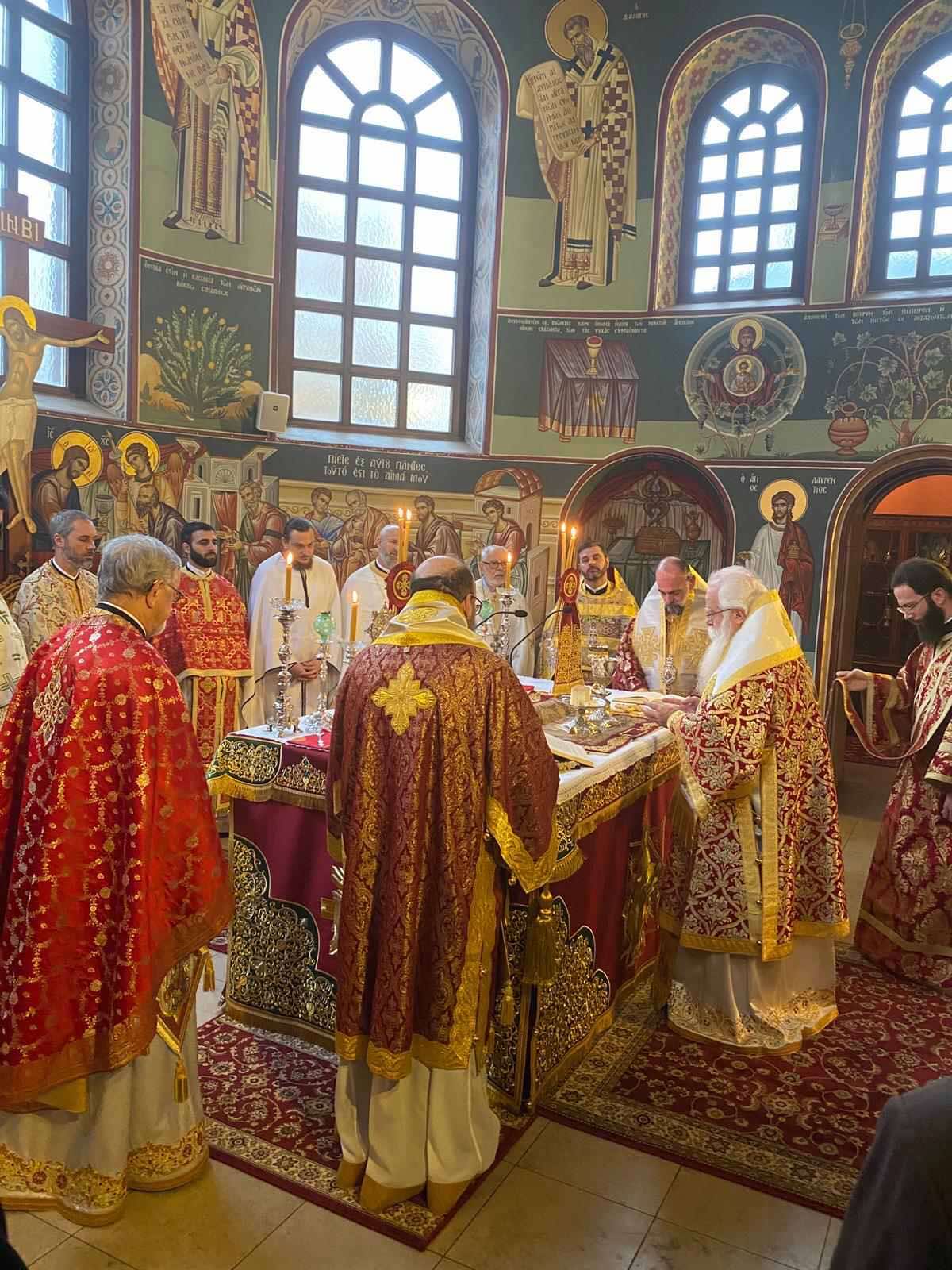 Ανήμερα της εορτής, ο Σεβασμιώτατος προεξήρχε της πανηγυρικής Θείας Λειτουργίας, συλλειτουργούντων των Βοηθών Επισκόπων του Μητροπολίτου Γερμανίας, Θεοφιλεστάτων Αριανζού κ. Βαρθολομαίου και Αργυρουπόλεως κ. Αμβροσίου, παρουσία και πάλι, μεγάλου πλήθους προσκυνητών.