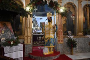 Ο Σεβασμιώτατος χοροστάτησε στην ακολουθία του όρθρου και τέλεσε την Αρχιερατική θεία Λειτουργία στην οποία παρευρέθηκαν πλήθος Κλεισουριωτών. Στο Θείο κήρυγμα, ο Ιεράρχης αναφέρθηκε στο πρόσωπό του Αγίου ενδόξου προφήτου Προδρόμου και βαπτιστού Ιωάννου, αναλύοντας έναν στίχο από τον ειρμό της έκτης ωδής της εορτής των Θεοφανίων. ”Η φωνή τού Λόγου, ο λύχνος τού φωτός, ο εωσφόρος”. Στην συνέχεια τελέσθηκε αρτοκλασία υπέρ υγείας των απανταχού Κλεισουριωτών.