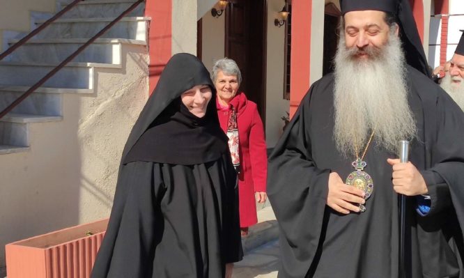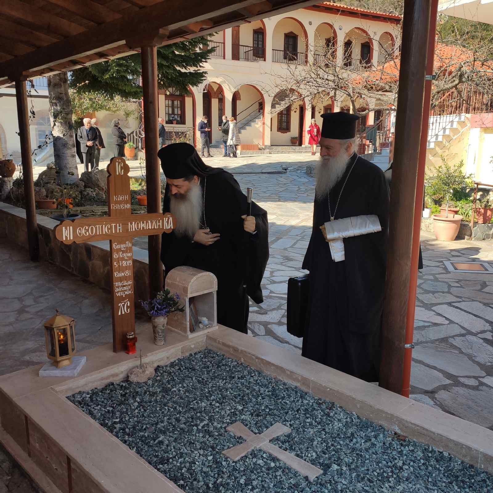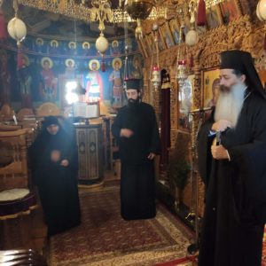Τον Σεβασμιώτατο και την συνοδεία του δέχθηκε με περισσή χαρά και αγάπη η Καθηγουμένη της Μονής Γερόντισσα Ιουστίνα και η Μοναχή Αναστασία, καθώς και ευλαβείς προσκυνητές από την ευρύτερη περιοχή, μεταξύ αυτών και ο Βουλευτής Φθιώτιδος κ. Γεώργιος Κοτρωνιάς και ο Αντιδήμαρχος του Δήμου Στυλίδος κ. Ιωάννης Πρεμέτης.