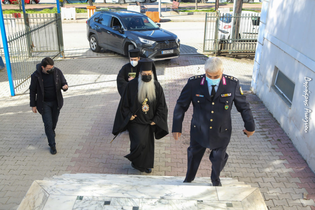Το Αστυνομικό Μέγαρο της Γενικής Αστυνομικής Περιφερειακής Διευθύνσεως Στερεάς Ελλάδος επισκέφθηκε σήμερα ο Σεβασμιώτατος Μητροπολίτης Φθιώτιδος κ. Συμεών, αποδεχόμενος την ευγενική πρόσκληση του Γενικού Περιφερειακού Αστυνομικού Διευθυντού Στερεάς Ελλάδος, Υποστρατήγου Γεωργίου Κανέλλου, προκειμένου να ευλογήσει την Βασιλόπιτα και να ευχηθεί πατρικώς στον Στρατηγό, στους Αστυνομικούς Διευθυντές, στους Αξιωματικούς, Υπαξιωματικούς και σε όλους τους εργαζομένους του Σώματος της Ελληνικής Αστυνομίας.