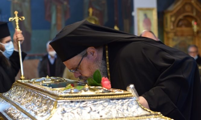 Ο Σεβασμιώτατος στο κήρυγμά του μίλησε για την επέτειο των 90 ετών από την οσιακή κοίμηση του Αγίου και προσκάλεσε τον καθένα να αντιγράψει ότι του ταιριάζει από τη ζωή του σύγχρονου διακόνου του Ευαγγελίου.