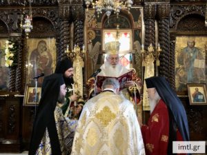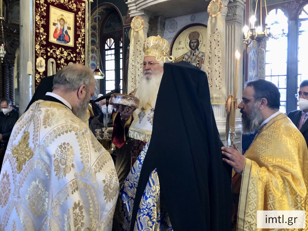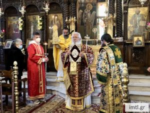 Τέλος, ευχαρίστησε τον εφημέριο του Ναού π. Μιχαήλ Κατσίνα για την διακονία του στην ενορία, τον οποίο τοποθέτησε εκεί πριν 13 χρόνια όταν τον χειροτόνησε Πρεσβύτερο, εκφράζοντας την αγάπη, την εμπιστοσύνη και την εκτίμησή του προς το πρόσωπο του.