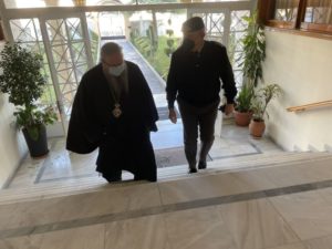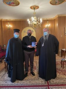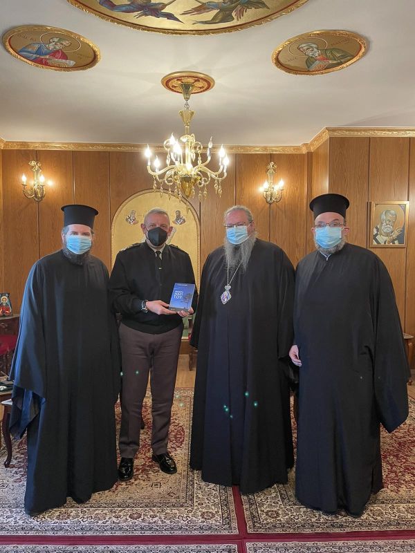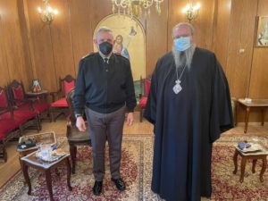 Ο Σεβασμιώτατος υποδέχθηκε εγκαρδίως τον κ. Αρχηγό, τηρώντας αμφότεροι τα ασφαλή μέτρα προφύλαξης που έχει συστήσει η Ελληνική Πολιτεία, και τον ευχαρίστησε για την αμέριστη συμπαράσταση και αγάπη που επιδεικνύει στην τοπική Εκκλησία.
