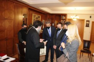 Επίσης, στο πλαίσιο της συναντήσεως, ο Σεβασμιώτατος Μητροπολίτης Σερρών κ. Θεολόγος ενημέρωσε τον κ. Συρίγο, για το θέμα της επιστροφής των κλαπέντων ιερών κειμηλίων της Εκκλησίας των Σερρών. «Το αίτημα της επιστροφής των εκκλησιαστικών κειμηλίων, ως έργον δικαιοσύνης και ιστορικής αληθείας, είναι πάντα επίκαιρον!», ανέφερε μεταξύ άλλων ο Ποιμενάρχης.