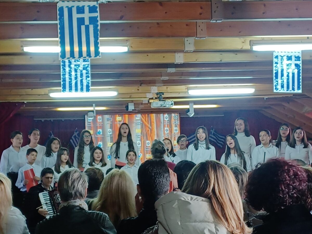 Στην αίθουσα εκδηλώσεων του Σχολείου παρουσιάστηκε ένα πρόγραμμα, το οποίο ετοίμασαν, εκπαιδευτικοί και μαθητές από Γυμνάσια, Λύκεια της Δυτικής Θεσσαλονίκης και την Παιδική Χορωδία της Ιεράς Μητροπόλεως Νεαπόλεως και Σταυρουπόλεως «Οι Μελωδοί της Χαράς».
