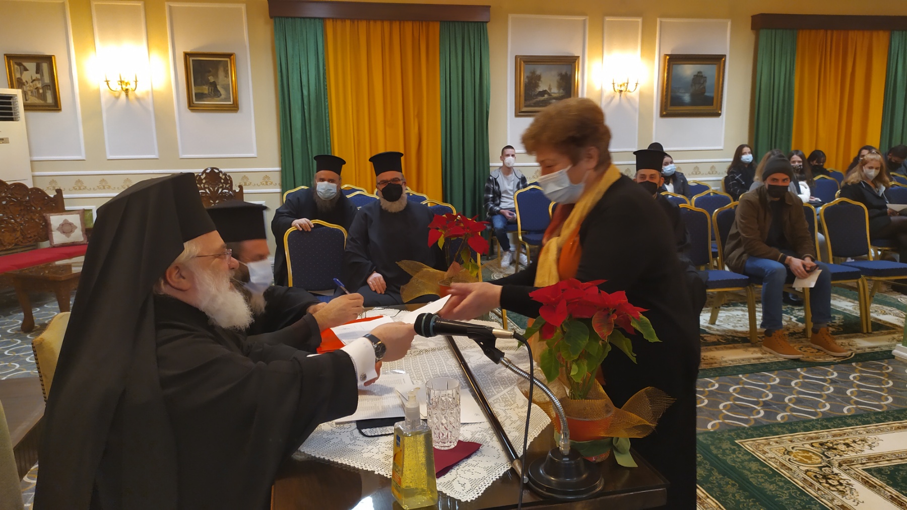 Μέσα στο εορταστικό κλίμα των ημερών του Αγίου Δωδεκαημέρου, ο Σεβασμιώτατος Μητροπολίτης Διδυμοτείχου, Ορεστιάδος και Σουφλίου κ. Δαμασκηνός, συναντήθηκε με τους υποτρόφους φοιτητές της Ιεράς Μητροπόλεως, στην Μεγάλη Αίθουσα του Επισκοπείου Ορεστιάδος, τις απογευματινές ώρες της 3ης Ιανουαρίου.