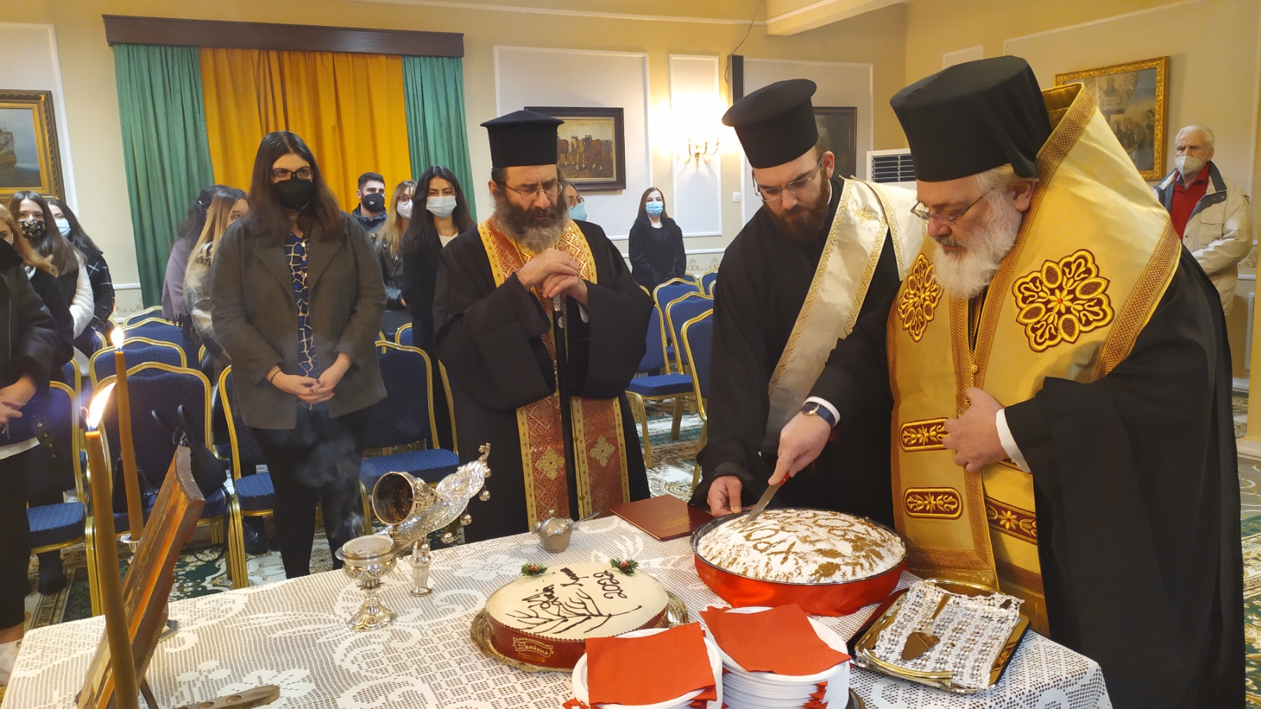 Ο Σεβασμιώτατος κ. Δαμασκηνός, αφού ευλόγησε την Αγιοβασιλόπιτα, μίλησε στους νέους, οι οποίοι σπουδάζουν στα ανώτερα και ανώτατα εκπαιδευτικά ιδρύματα της χώρας, και τους συνέστησε εκτός από γνώσεις να καλλιεργήσουν ήθος χριστιανικό και να αγαπούν τον τόπο τους, στον οποίο οφείλουν να επιστρέψουν και να προσφέρουν την ικμάδα της νεότητάς τους.