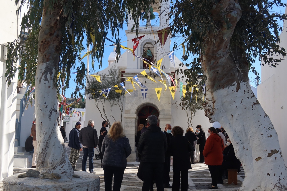Στον Μητροπολιτικό Ναό της Μεγάλης Παναγιάς Μυκόνου ιερούργησε το πρωί του Σαββάτου 19 Φεβρουαρίου ο Σεβασμιώτατος Μητροπολίτης Σύρου κ. Δωρόθεος, με τη λειτουργική συμμετοχή των Εφημερίων του Ναού και του Αρχιερατικού Επιτρόπου Άνω Μεράς. Στο τέλος της Θείας Λειτουργίας τέλεσε το τεσσαρακονθήμερο Μνημόσυνο φιλογενούς Μυκονίου νέου.
