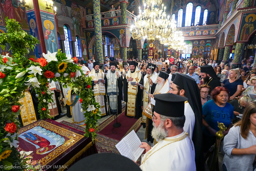 Το εσπέρας της Πέμπτης, 15ης Αυγούστου, στον πανηγυρίζοντα Ιερό Μητροπολιτικό Ναό Κοιμήσεως της Θεοτόκου Αλεξανδρείας, όπως κάθε χρόνο, τελέστηκε Μεθεόρτιος Πανηγυρικός Εσπερινός και στη συνέχεια εψάλησαν τα εγκώμια προς την Υπεραγία Θεοτόκο.