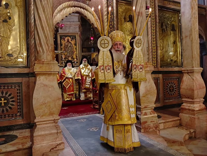 Πρός τιμήν τῶν μαρτύρων τούτων καί τῆς Ὑμετέρας Μακαριότητος συνήχθημεν πάντα τά μέλη τῆς γεραρᾶς ἡμῶν Ἁγιοταφιτικῆς Ἀδελφότητος, Ἀρχιερεῖς, Ἱερομόναχοι, Διάκονοι καί Μοναχοί, ἔτι δέ καί ὁ εὐλαβής κλῆρος καί τό χριστεπώνυμον πλήρωμα ἐκ τῆς δικαιοδοσίας τοῦ Πατριαρχείου εἰς Ἰσραήλ, Ἰορδανίαν καί Παλαιστίνην καί ἐν τῇ Θείᾳ Εὐχαριστίᾳ ἐδεήθημεν ὑπέρ ὑγιείας, εὐσταθείας καί κραταιώσεως Αὐτῆς εἰς τό Θεόθεν ἐμπεπιστευμένον Αὐτῇ Ποιμαντικόν Πατριαρχικόν ἔργον.
