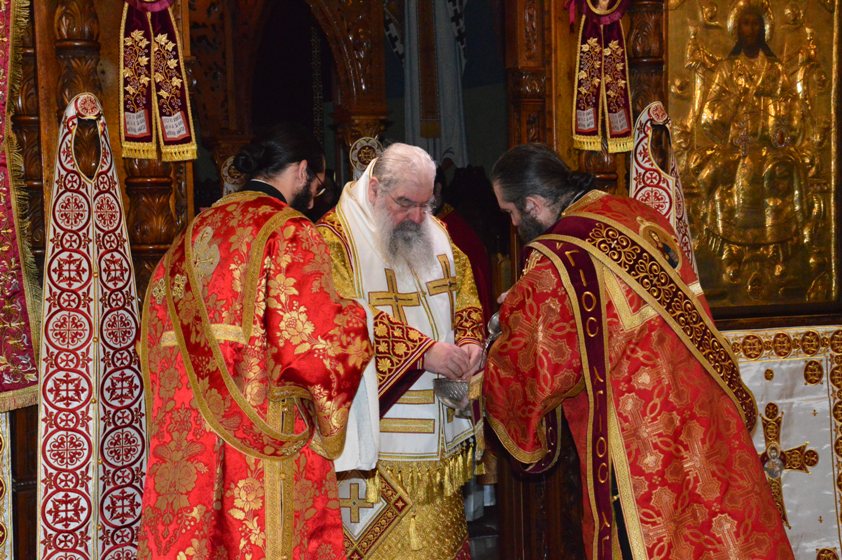 Στο ιερό βήμα παρέστησαν συμπροσεχόμενοι οι Θεοφιλεστάτοι Επισκόποι Αμαθούντος κ. Νικόλαος και Νεαπόλεως κ. Πορφύριος.
