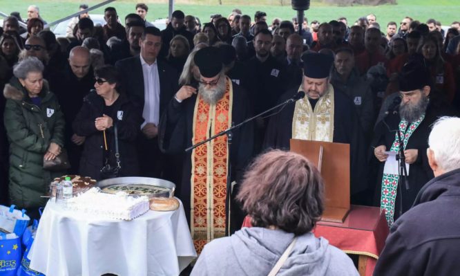 Ο ιερέας που διάβασε τα ονόματα των θυμάτων κατά τη διάρκεια του τρισάγιου, ξέσπασε σε κλάματα και έσπασε η φωνή του.