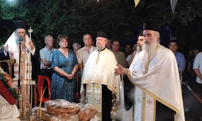 «Βρισκόμαστε λοιπόν, αδελφοί, όπως κάθε χρόνο, σε αυτόν τον πολύ όμορφο τόπο, σε αυτόν τον λοφίσκο, των Ασπρογείων και κυκλούμε όλοι μαζί τον Ιερό Ναό του Αγίου Φανουρίου, που η ευσέβεια και η αγάπη των Χριστιανών, των αδελφών μας τον έχει ανεγείρει. Και ερχόμαστε όλοι μας, να τελειώσουμε την ακολουθία του Εσπερινού, να προσκυνήσουμε το εικόνισμα του Αγίου, να του καταθέσουμε αιτήματα μέσα από τα βάθη της ψυχής μας και του νοός μας και να τον παρακαλέσουμε να είναι ταχύς εις αντίληψιν, όλων αυτών των οποίων ο άνθρωπος έχει ανάγκη και βέβαια, όπως έθος υπάρχει μέσα στην Εκκλησία, προσφέρουμε και δώρα. Τις πίτες του Αγίου, ή την αρτοκλασία, τα οποία ήδη ευλογήθηκαν και θα διανεμηθούν στους πιστούς. Και βέβαια εάν προσέχαμε λίγο και τα πολύ ωραία λόγια της ευχής που ευλογούμε την αρτοκλασία, θα ακούσουμε ότι, ευλογούμε τους άρτους και τους διανέμουμε, τους διαμοιράζουμε, «ίνα και οι εξ’ αυτών μετά λαμβάνοντες, ευλογηθήσονται». Δηλαδή να πάρουν ευλογία αυτοί οι οποίοι θα μεταλάβουν, θα μετέχουν, θα φάνε δηλαδή από αυτούς τους ευλογημένους άρτους, από αυτές τις ευλογημένες προσφορές των χριστιανών. Και αυτό το γνωρίζουμε πάρα πολύ καλά, ότι είναι έθος, συνήθεια και γεγονός εκκλησιαστικό μέσα στην εκκλησιαστική κοινωνία, όπου μας αναγάγει στο θαύμα του πολλαπλασιασμού των άρτων από τον Κύριό μας, τον Ιησού Χριστό.