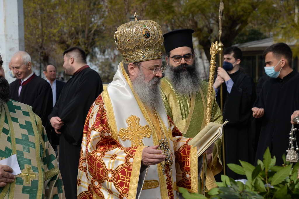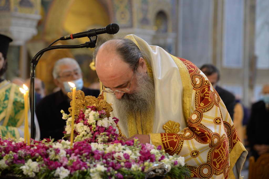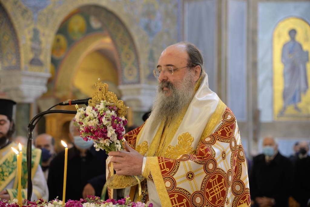 Στον Ιερό Ναό του Αγίου Αποστόλου Ανδρέου Πατρών, τέλεσε την Θεία Λειτουργία της Κυριακής της Σταυροπροσκυνήσεως, ο Σεβασμιώτατος Μητροπολίτης Πατρών κ. Χρυσόστομος, καθώς και τα ιερά μνημόσυνα των αοιδίμων Εθνομαρτύρων Αρχιερέων των Πατρών, Νεοφύτου, Γερμανού του Α’ και Παρθενίου του Ε’, των οποίων οι προτομές εστήθησαν πέρυσι, με την συμπλήρωση 200 ετών από της Επαναστάσεως του 1821, στον αύλειο χώρο του μεγαλοπρεπούς Ιερού Ναού του Αγίου Ανδρέου.