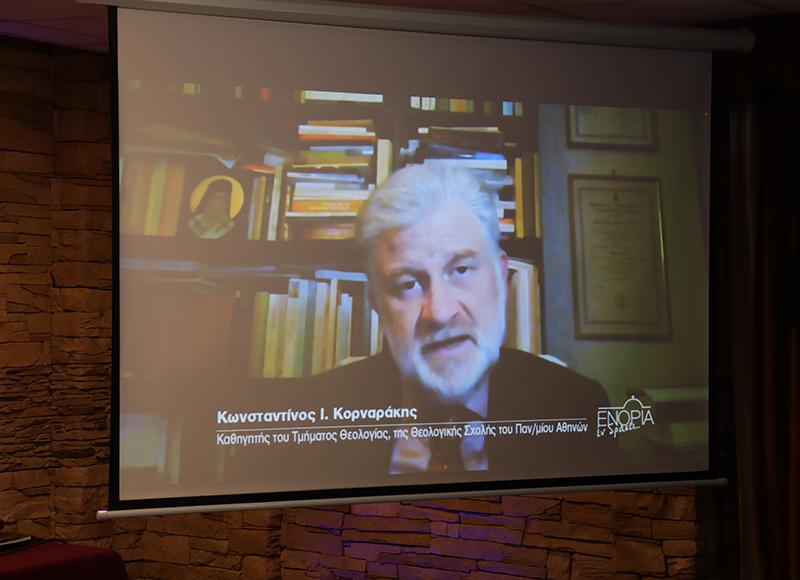 Ο Καθηγητής του Τμήματος Θεολογίας, της Θεολογικής Σχολής του Πανεπιστημίου Αθηνών κ. Κορναράκης, μίλησε στην εσπερίδα διαδικτυακά για την συμβολή του τιμώμενου στις βιοηθικές σπουδές, στον διεπιστημονικό διάλογο και τις ποιμαντικές εφαρμογές των θεολογικών βιοηθικών αρχών.
