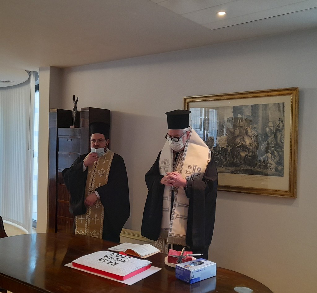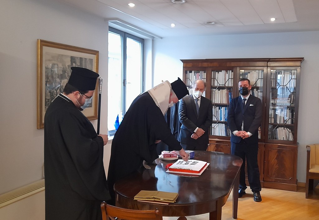 Ο Σεβασμιώτατος κ. Αθηναγόρας κατά την επίσκεψη του ευλόγησε την Βασιλόπιτα της Ελληνικής Πρεσβείας Βρυξελλών.