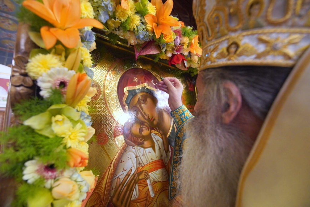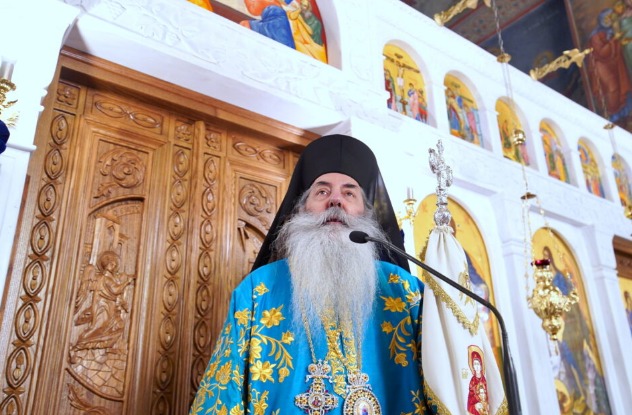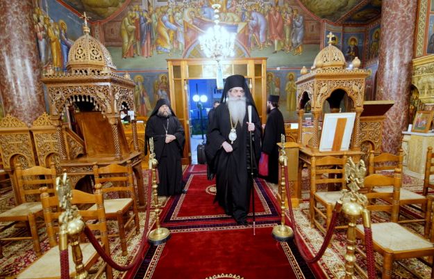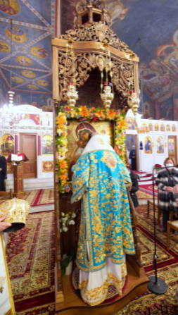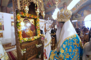Κατά την διάρκεια του κηρύγματός του ο Σεβασμιώτατος επεσήμανε πως «μέσα σε αυτή την δύσκολη περίσταση την οποία βιώνουμε όλοι και ως πρόσωπα και ως κοινωνία και ως Έθνος και ως οικουμένη», σήμερα στον Ναό της Υψώσεως του Τιμίου Σταυρού «που υπενθυμίζει το πάθος και την οδύνη και το Σταυρό και τον θάνατο του Κυρίου μας», «έχουμε τη μεγάλη τιμή και την υπερτάτη Ευλογία και την δωρεά να υψώσουμε και να ενθρονίσουμε την Ιερά Εικόνα της Υπεραγίας Θεοτόκου την οποία αποκαλούμε ‘’Παναγία του πόνου’’, «διότι αναμιμνησκόμεθα της προρρήσεως την οποία της προφήτευσε ο Θεοδόχος Συμεών όταν η Παναγία έφερε τον Κύριο στο Ναό για να τον αφιερώσει τεσσαρακονθήμερο βρέφος».